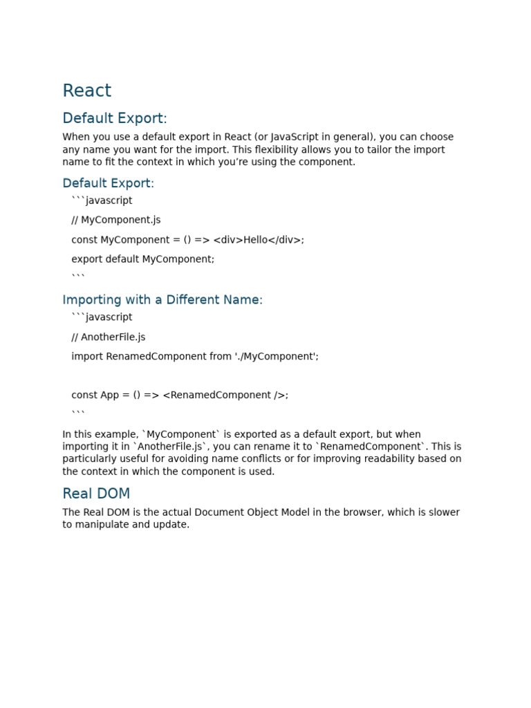 importing it in `AnotherFile.js`, you can rename it to `RenamedComponent`. This is