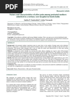 Many studies done on after labour pain had assessed its nature occupation, type of work, monthly income, type of family,