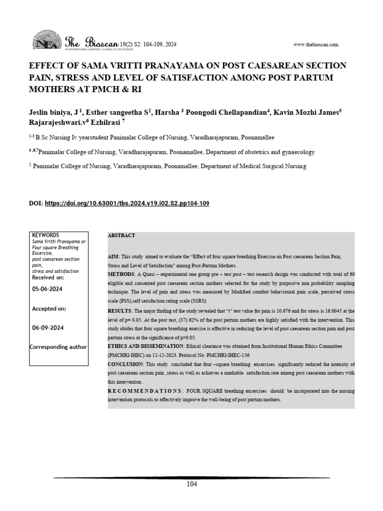 06-09-2024 study abides that four square breathing exercise is effective in reducing the level of post caesarean section pain and post