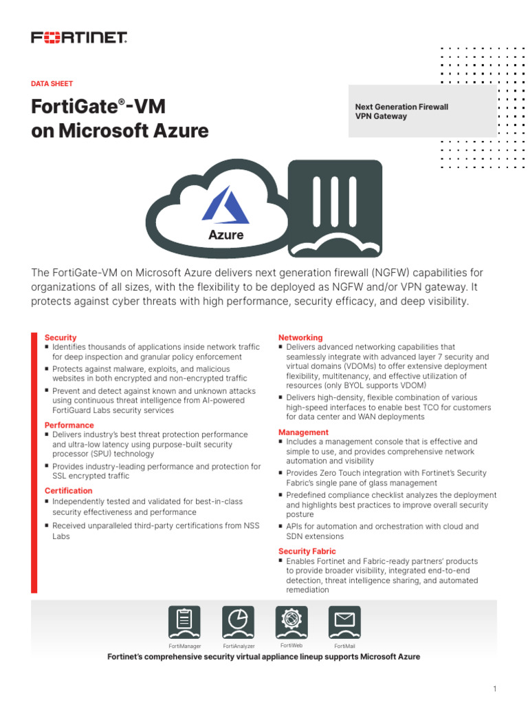 DATA SHEET | FortiGate®-VM on Microsoft Azure