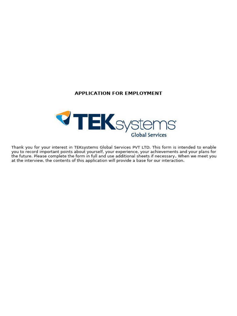 Thank you for your interest in TEKsystems Global Services PVT LTD. This form is intended to enable