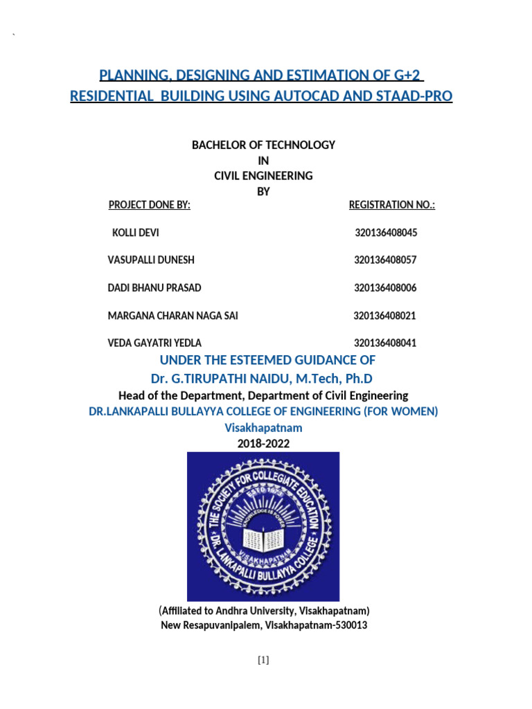 ESTIMATION OF G+2 RESIDENTIAL BUILDING USING AUTOCAD AND STAADPRO".