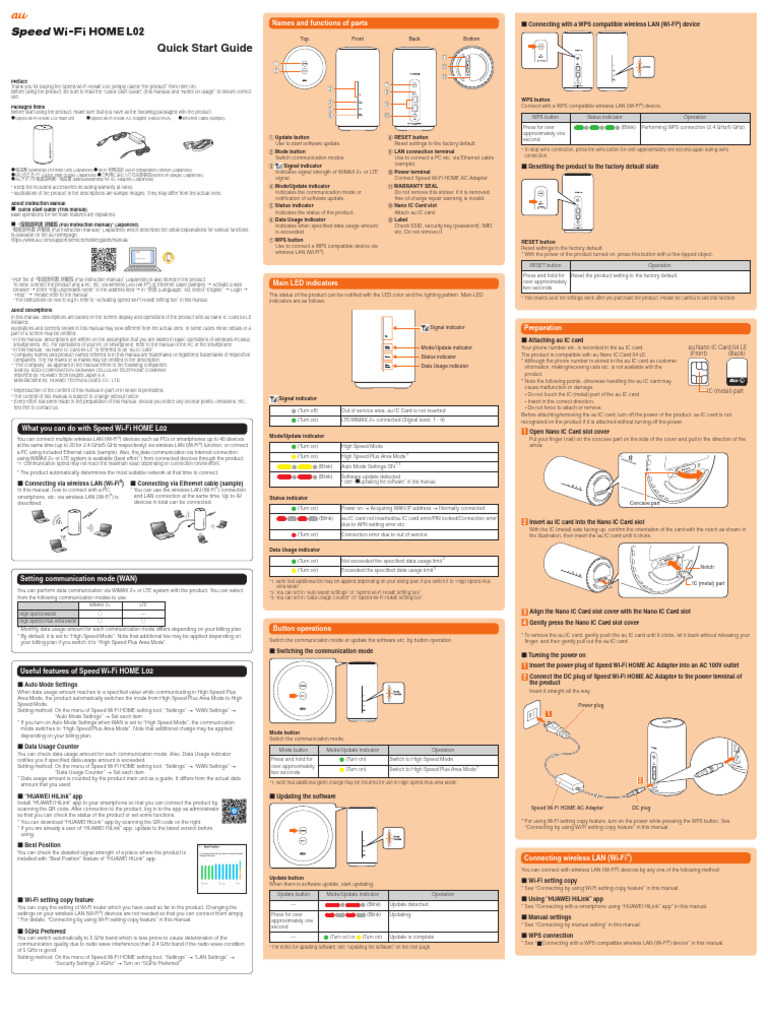 on the bottom of the main unit. that they can use the Speed Wi-Fi HOME L02 in good condition. trademarks of Wi-Fi Alliance.
