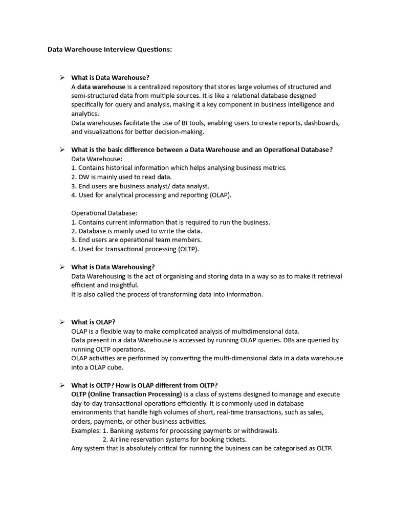 Data present in a data Warehouse is accessed by running OLAP queries. DBs are queried by