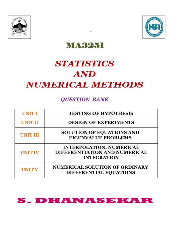 MA3251 STATISTICS AND NUMERICAL METHODS