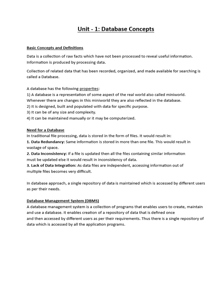 1) A database is a representation of some aspect of the real world also called miniworld.