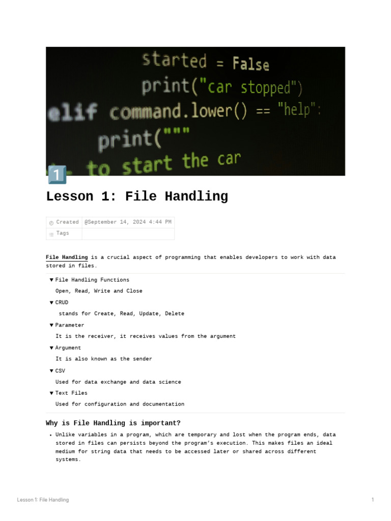 File Handling is a crucial aspect of programming that enables developers to work with data