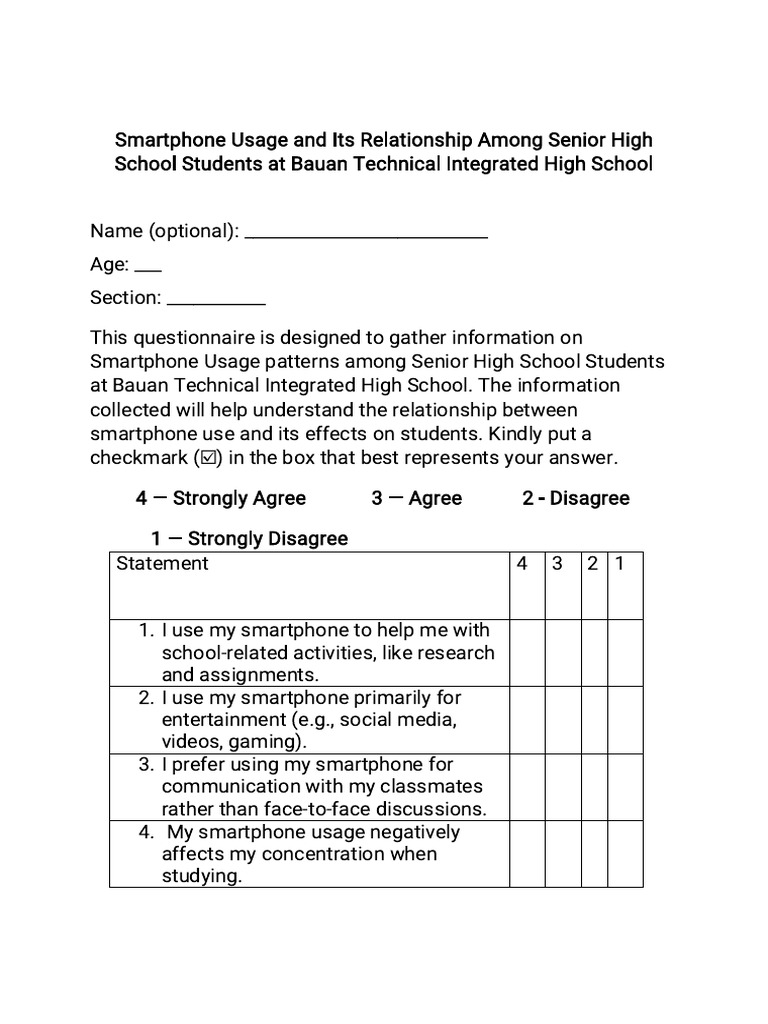 4 — Strongly Agree 3 — Agree 2 - Disagree