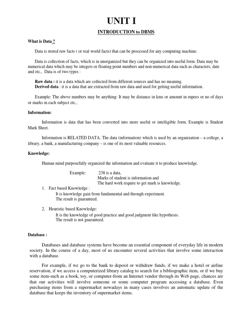 Rdbms Unit I