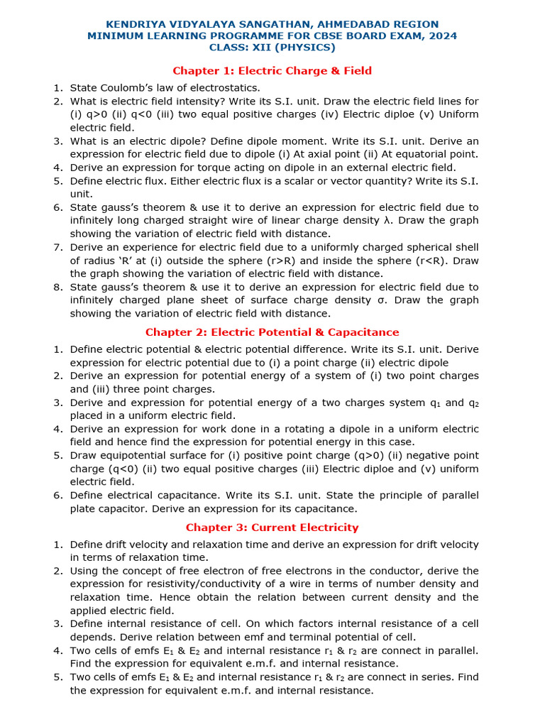 CLASS: XII (PHYSICS)