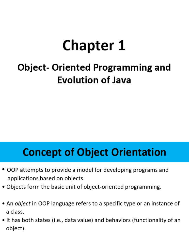 • Object-oriented Java is an object-oriented language. The main focus is on