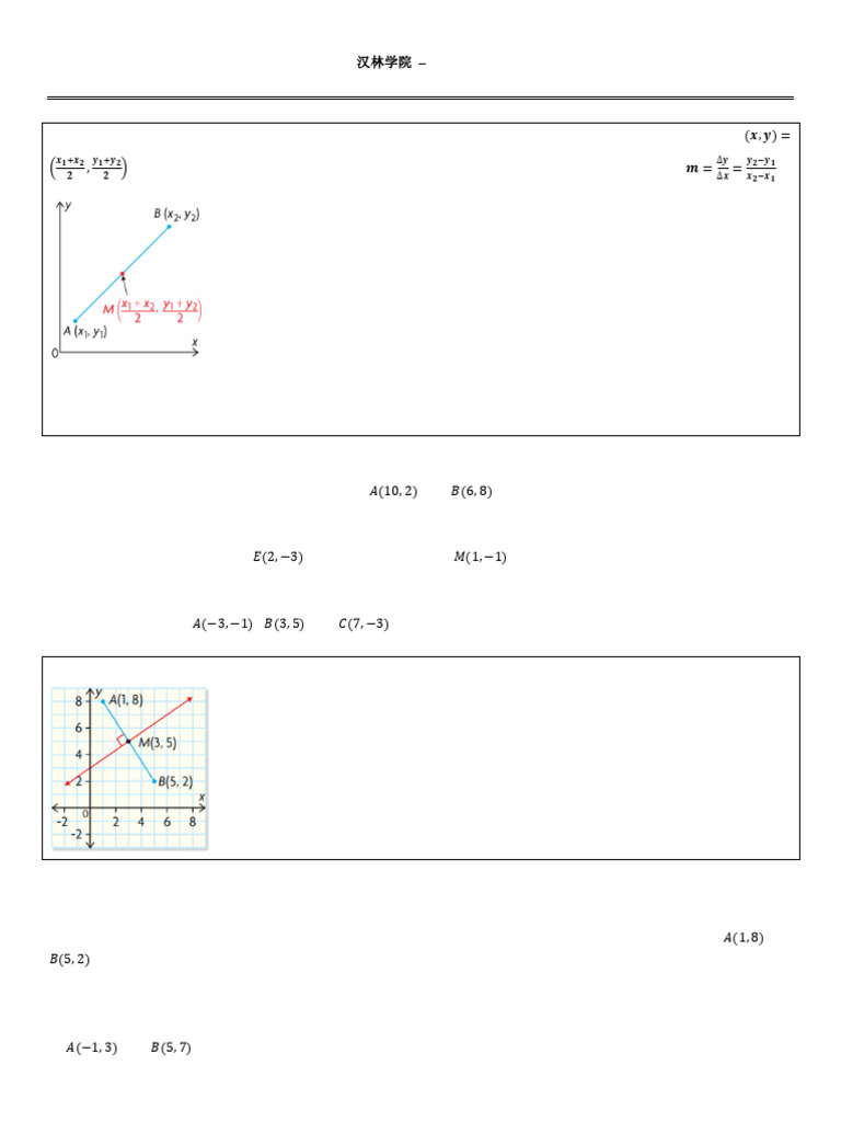 7. Determine an equation for the perpendicular bisector of a line segment with each pair of endpoints.