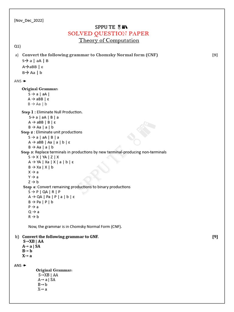 Now, the grammar is in Chomsky Normal Form (CNF).