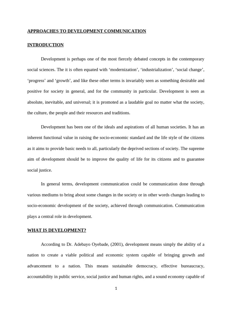 APPROACHES TO DEVELOPMENT COMMUNICATION