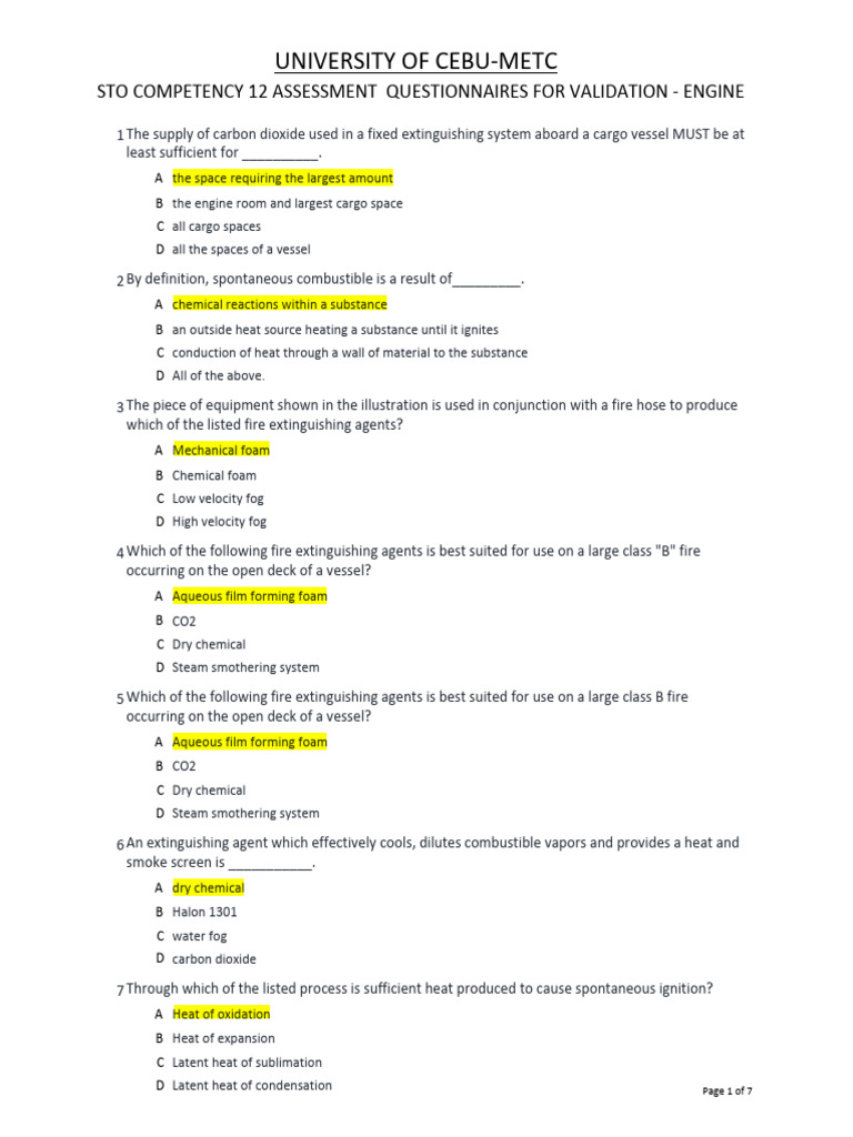 STO COMPETENCY 12 ASSESSMENT QUESTIONNAIRES FOR VALIDATION ‐ ENGINE