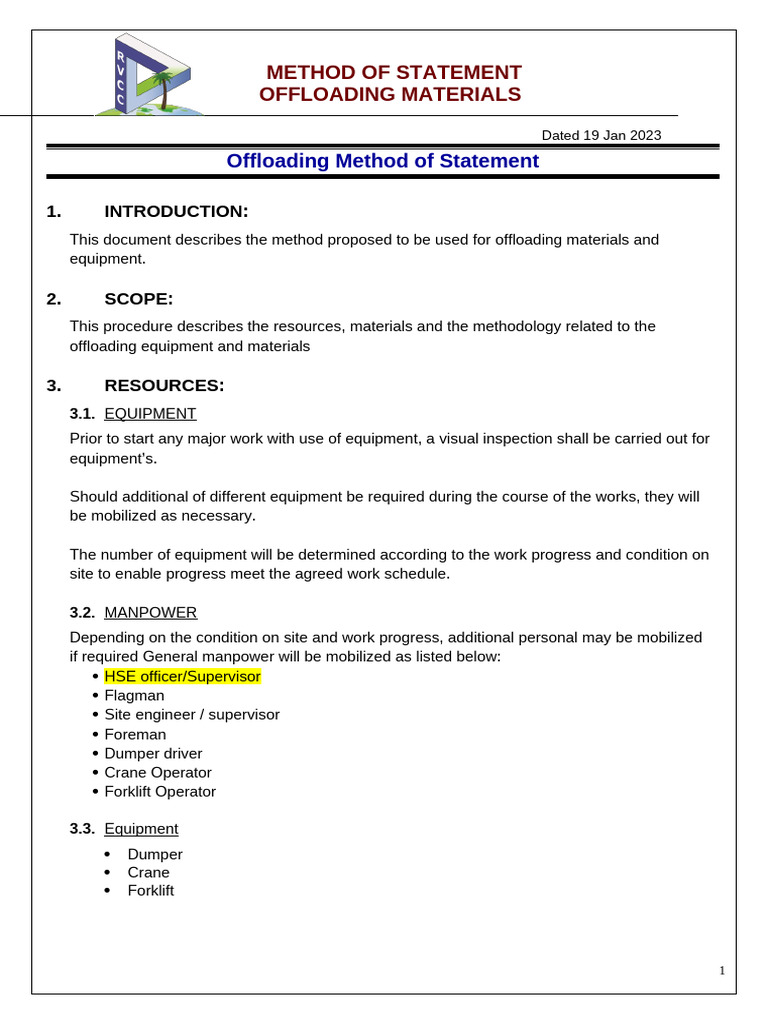 Depending on the condition on site and work progress, additional personal may be mobilized