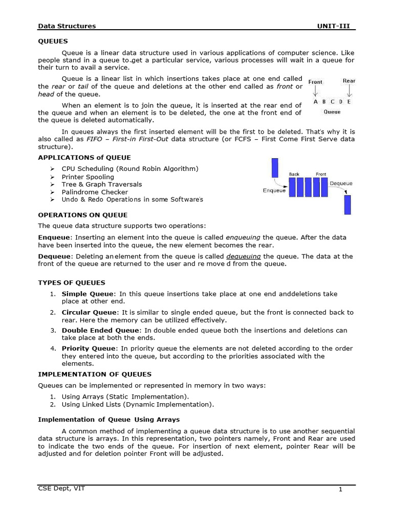 also called as FIFO – First-in First-Out data structure (or FCFS – First Come First Serve data