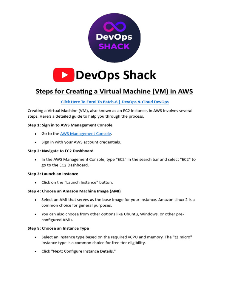 Creating a Virtual Machine (VM), also known as an EC2 instance, in AWS involves several