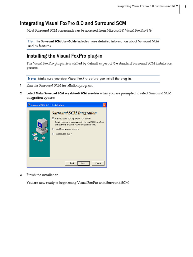 The Visual FoxPro plug-in is installed by default as part of the standard Surround SCM installation