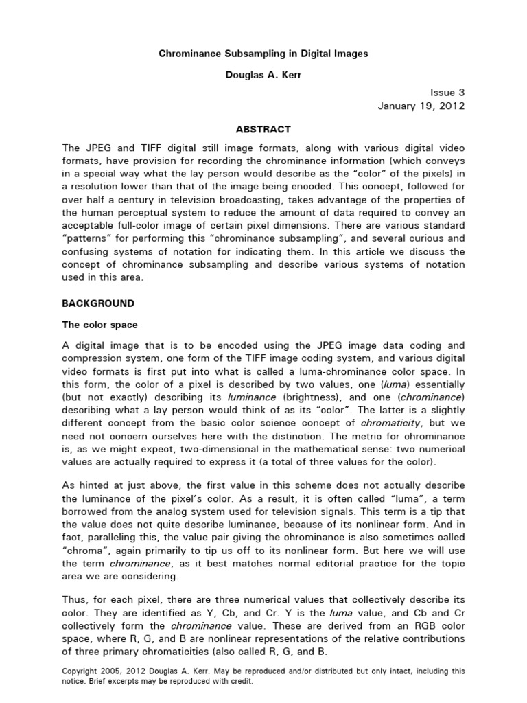 different subsampling for Cb and Cr. Again, the hope was to reduce the overall