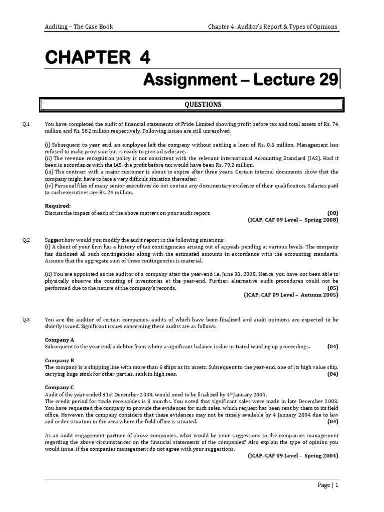 Auditing – The Case Book Chapter 4: Auditor’s Report & Types of Opinions