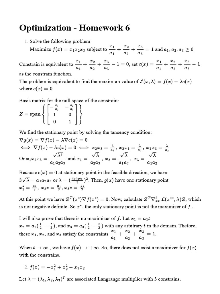 At this point we have Z (x )∇f (x ) = 0. Now, calculate Z ∇ L(x , λ)Z , which