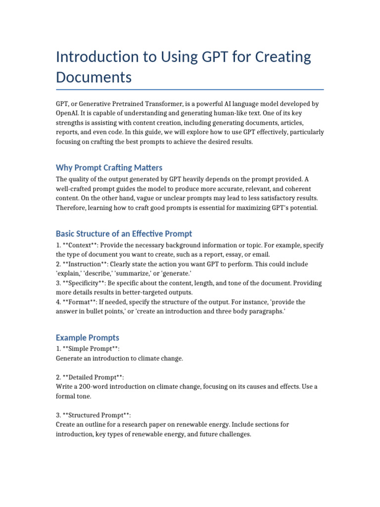 prompts, you can guide GPT to create high-quality, relevant documents. Experiment with