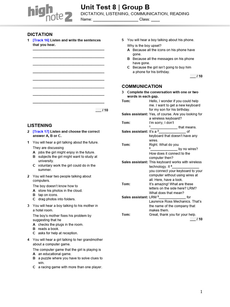 1 [Track 16] Listen and write the sentences 5 You will hear a boy talking about his phone.