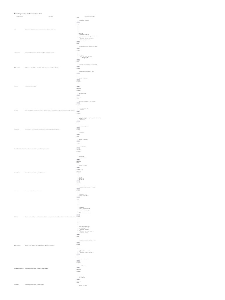 While Loop A `while` loop repeatedly executes a block of code as long as a specified condition remains `True`. Example: