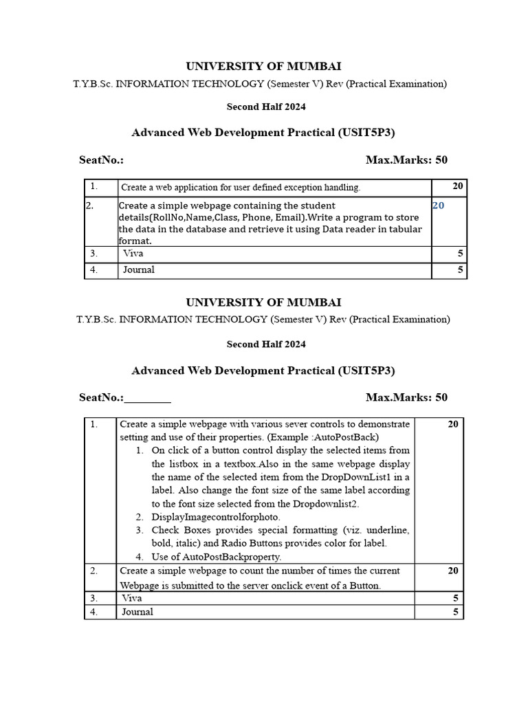 T.Y.B.Sc. INFORMATION TECHNOLOGY (Semester V) Rev (Practical Examination)