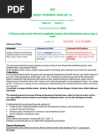 A1. The Creative Process: apply the creative process to create a variety of artworks, individually and/or collaboratively; A1.1 use various strategies, individually and/or collaboratively, with increasing skill to generate, explore, and elaborate on original ideas and to develop, reflect on, and revise detailed plans for the creation of art works that address a variety of creative challenges (e.g., extend their skills in using brainstorming, concept webs, mind maps, and/or groups discussions to formulate original and innovative ideas for an art work on a social or personal theme; use critical research skills to explore and elaborate on ideas; demonstrate fluency in formulating clear and detailed plans; demonstrate flexibility in revising their plans on the basis of reflection) A1.2 apply, with increasing fluency and flexibility, the appropriate stages of the creative process to produce two- and three-dimensional art works using a variety of traditional and contemporary media (e.g., extend their skills in working with a range of media; demonstrate flexibility in revising plans in response to problems encountered during other stages of the creative process; reflect on the effectiveness of preliminary versions of their work, and revise the work on the basis of reflection and self-assessment) A1.3 document their use of each stage of the creative process, and provide evidence of critical inquiry, in a portfolio that includes a range of art works created for a variety of purposes (e.g., ensure that their portfolio includes the following: evidence of critical inquiry associated with idea generation and elaboration; evidence of research on how different artists approach specific themes and/or use particular techniques that can be adapted in their own work; preliminary and final works to show evidence of thoughtful revision), and review and reflect on the contents of their portfolio to determine how effectively they have used the creative process A2. The Elements and Principles of Design: apply the elements and principles of design to create art works for the purpose of self-expression and to communicate ideas, information, and/or messages; A3. Production and Presentation: produce art works, using a variety of media/materials and traditional and emerging technologies, tools, and techniques, and demonstrate an understanding of a variety of ways of presenting their works and the works of others. A3.1 use with increasing skill a wide variety of media, including alternative media, and current technologies to create two- and three-dimensional art works for a variety of purposes A3.2 use with increasing skill a wide variety of traditional and current materials, technologies, techniques, and tools to create original art works for a variety of purposes and audiences B1. The Critical Analysis Process: demonstrate an understanding of the critical analysis process by examining, interpreting, evaluating, and reflecting on various art works; B1.4 describe in detail and reflect on with increasing insight the qualities of their art works and the works of others, and evaluate the effectiveness of these works using a wide variety of criteria (e.g., provide an informed explanation of why a work of art is, or is not, successful with respect to its ability to communicate a message or emotion, its technical and aesthetic conventions, its form and stylistic qualities, its originality) C1. Terminology: demonstrate an understanding of, and use correct terminology when referring to, elements, principles, and other components related to visual arts; C1.1 extend their understanding of the elements and principles of design, and use terminology related to these elements and principles correctly and appropriately when creating or analysing a variety of art works (e.g., when analysing how artists manipulation of space, movement, form, and proportion affects meaning in an installation or an environmental work) C1.2 explain in detail terminology related to a wide variety of techniques, materials, and tools (e.g., techniques and materials associated with installation art; additive and subtractive techniques, digital manipulation, impasto, optical colour mixing, pointillism), and use this terminology correctly and appropriately when creating, analysing, and/or presenting art works C1.3 explain in detail the stages of the creative process and the critical analysis process, and explain, using appropriate terminology, how these processes contribute to the successful creation and analysis of art works C2. Conventions and Techniques: demonstrate an understanding of conventions and techniques used in the creation of visual art works; C2.1 extend their understanding of a wide variety of techniques that artists use to achieve a range of specific effects (e.g., techniques used to create a range of textures in an art work, to develop the connection and relationship between forms in a composition, to draw attention to specific parts of a work) C3. Responsible Practices: demonstrate an understanding of responsible practices in visual arts. C3.2 demonstrate appropriate health and safety procedures and conscientious practices in the selection and use of various materials, techniques, tools, and technologies when producing or presenting art works (e.g., demonstrate safe practices when creating installations, assemblages, earthworks, constructions, multimedia projects; demonstrate appropriate protocols, deportment, and respect for others when working in a studio or visiting a presentation space)