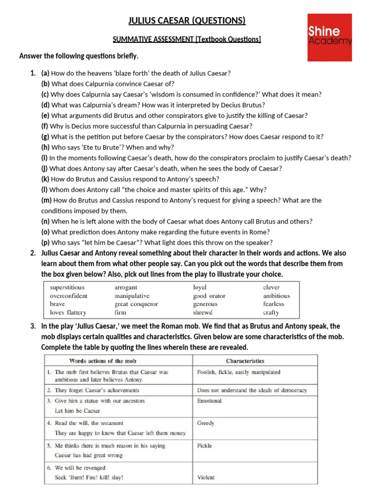 JULIUS CAESAR (QUESTIONS)