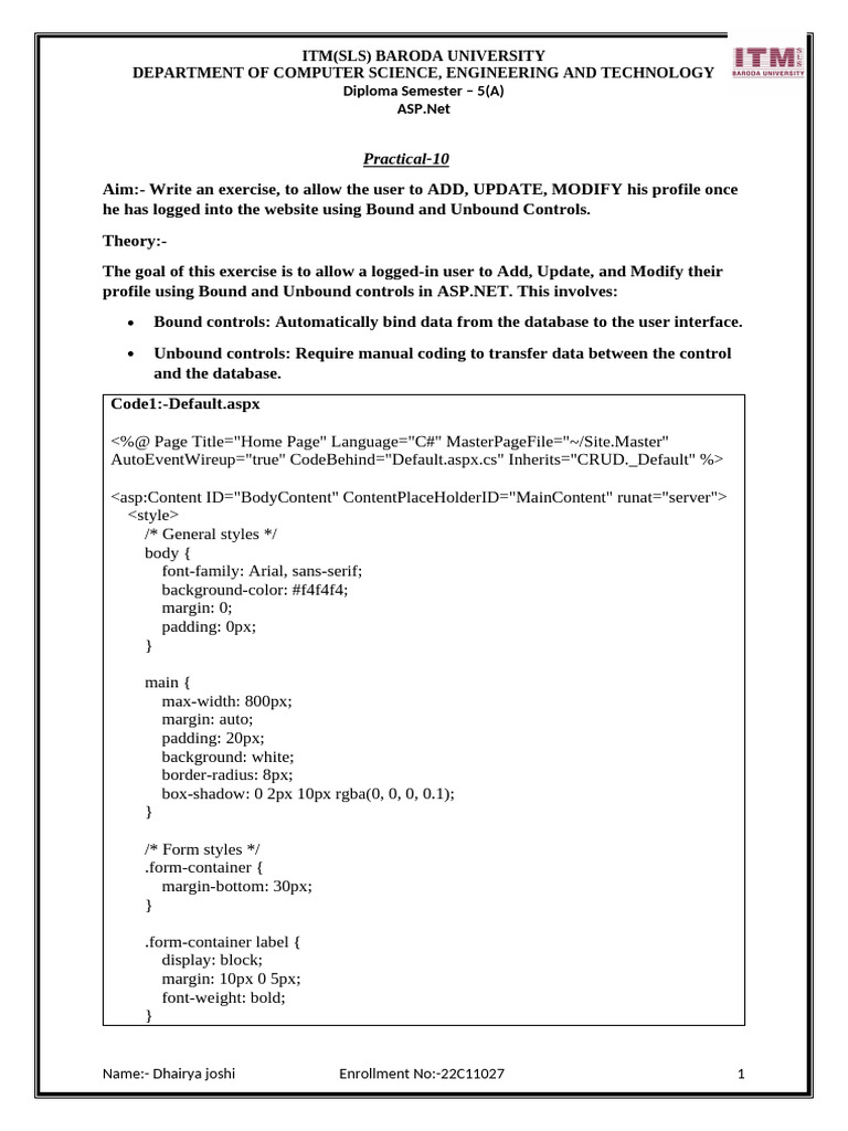 profile using Bound and Unbound controls in ASP.NET. This involves: