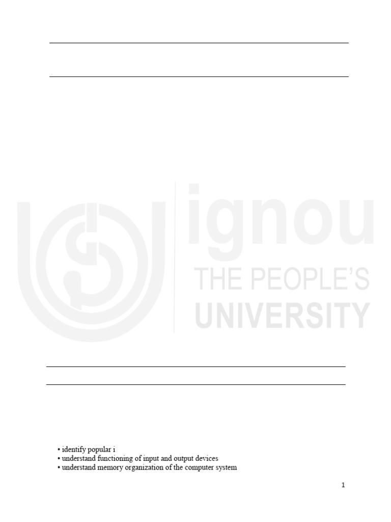 unit of the computer. The discussion in this unit is confined to input and output devices popular