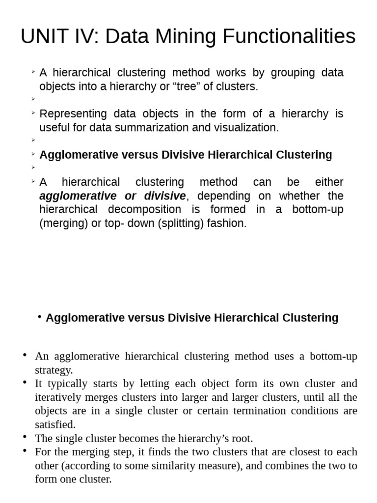 It starts by placing all objects in one cluster, which is the hierarchy’s
