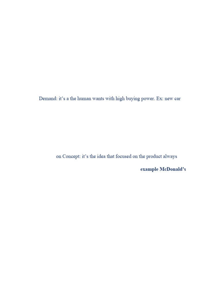 Demand: it’s a the human wants with high buying power. Ex: new car