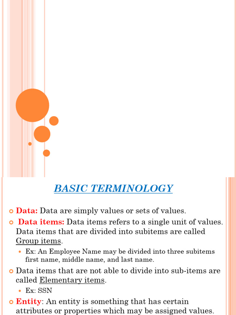 Ex: Attributes- Names, Age,SSN Values- Gail, 34, 40