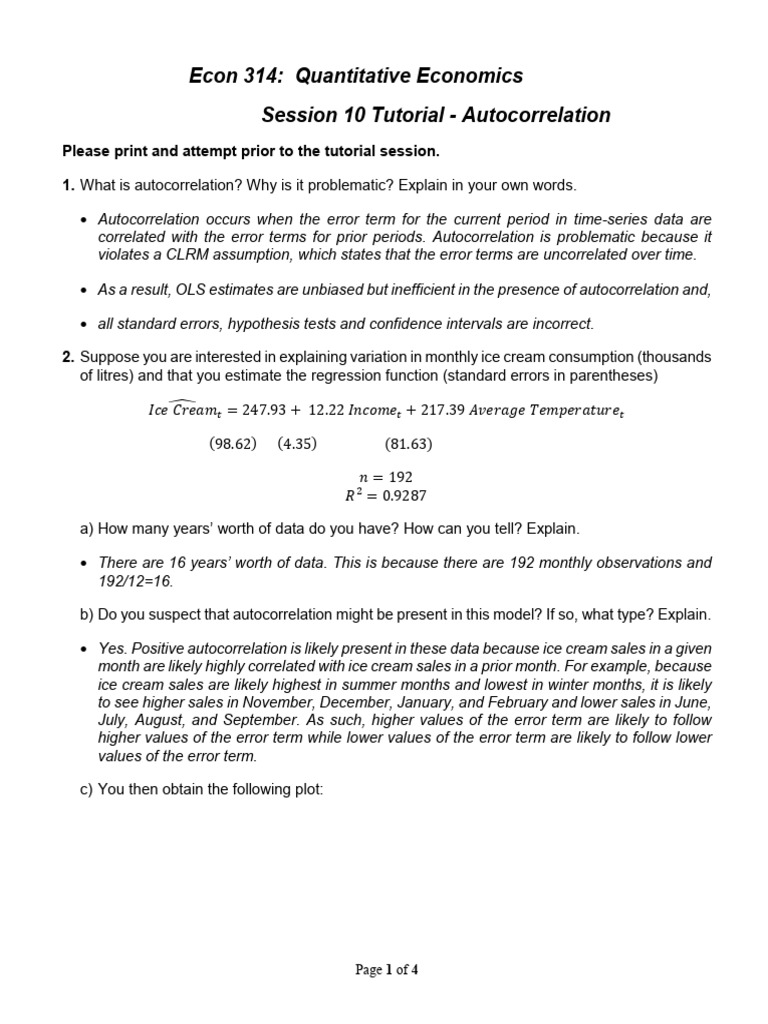 1. What is autocorrelation? Why is it problematic? Explain in your own words.