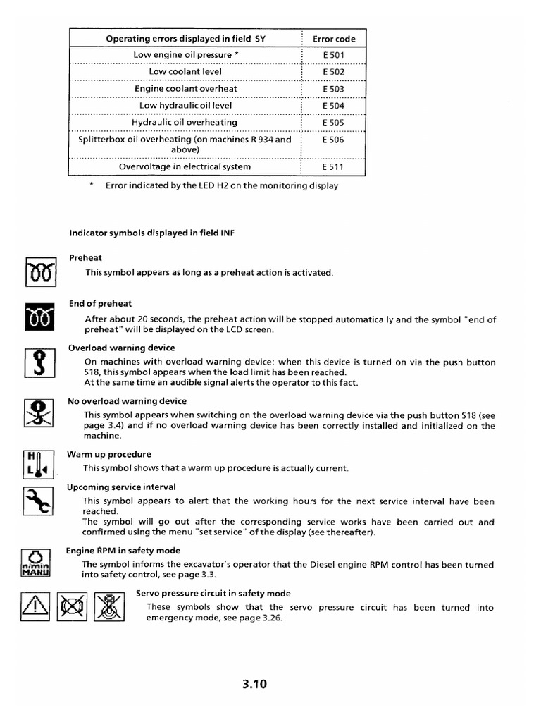 Hydraulic oil level monitoring Short circuit + 24 V E 011