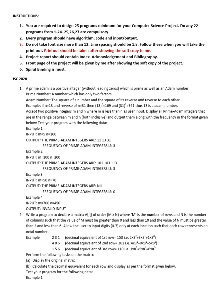 1. You are required to design 25 programs minimum for your Computer Science Project. Do any 22