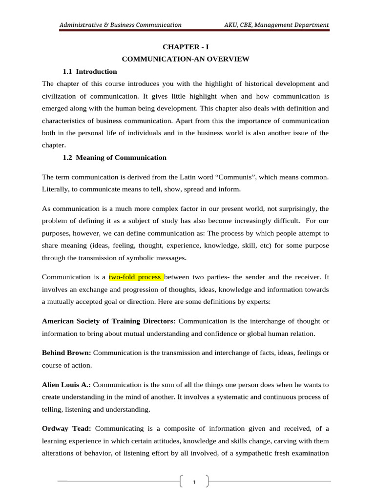 Administrative & Business Communication AKU, CBE, Management Department