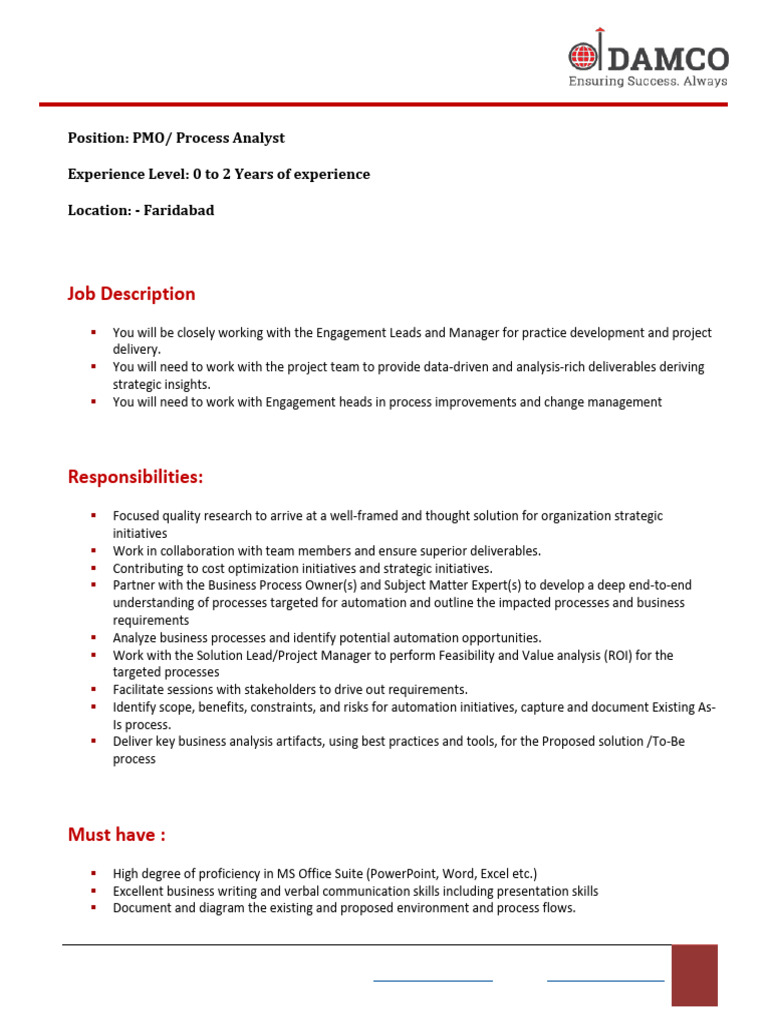 Position: PMO/ Process Analyst