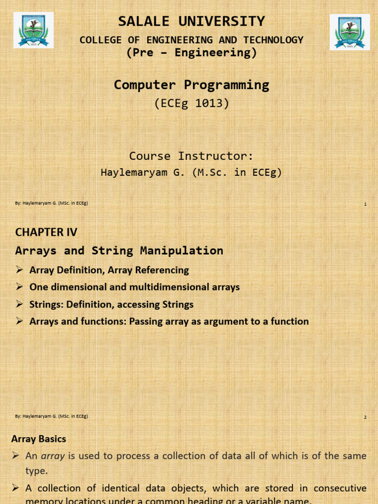 ➢ Array Definition, Array Referencing