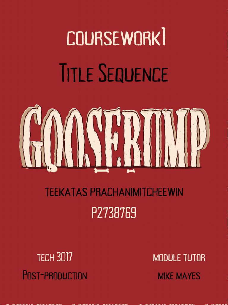 the title sequence for the TECH3017 Post-Production of video and film coursework.