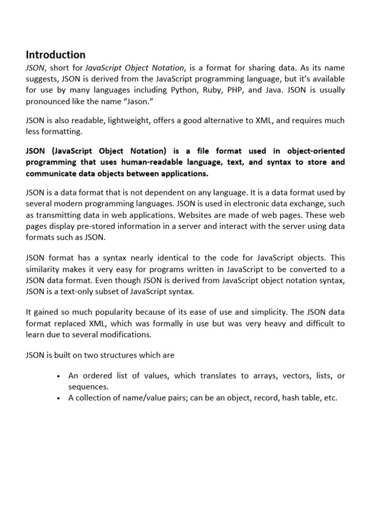 suggests, JSON is derived from the JavaScript programming language, but it’s available