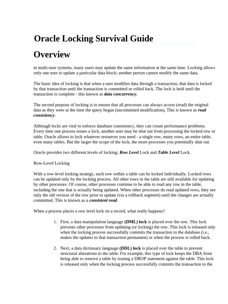 Inmulti-user systems, many users may update the same information at the same time. Locking allows