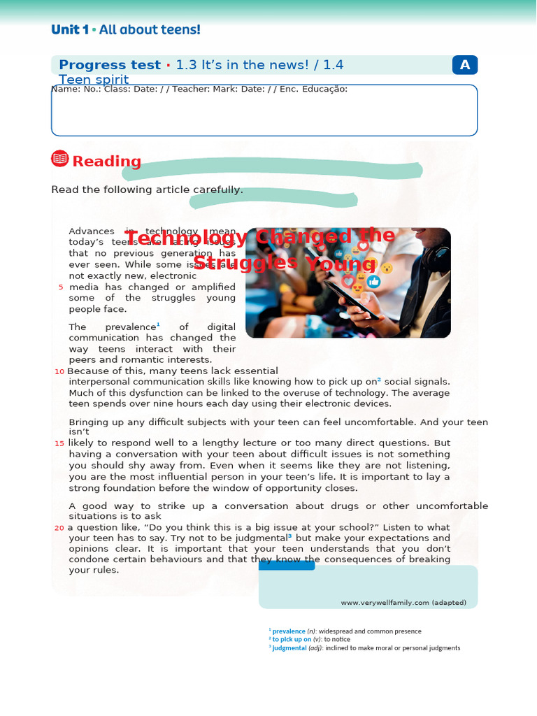 Name: No.: Class: Date: / / Teacher: Mark: Date: / / Enc. Educação: