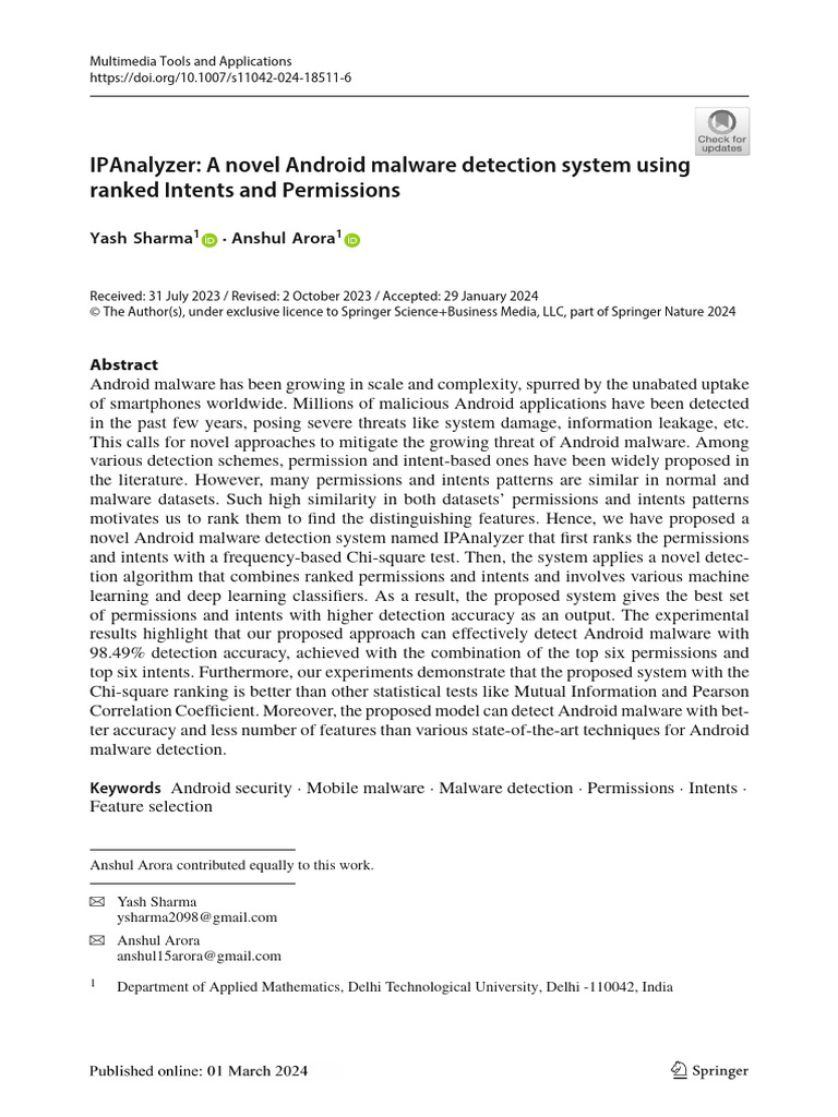 36. Lu T, Hou S (2018) A two-layered malware detection model based on permission for android. In: 2018