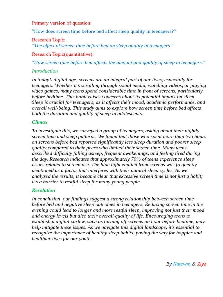 "How screen time before bed affects the amount and quality of sleep in teenagers."
