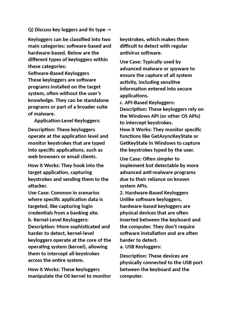 b. Kernel-Level Keyloggers: inserted between the keyboard and